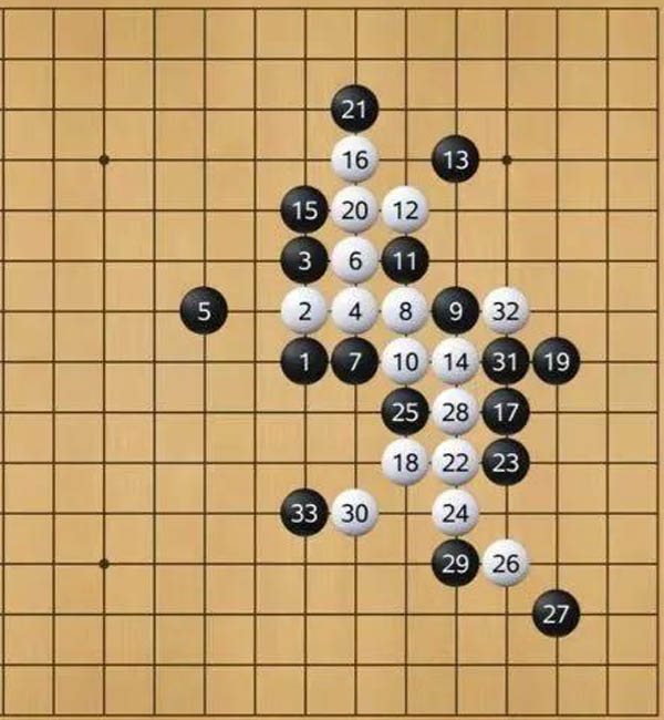 我很快走了正着14,对手陷入长考,显然知道大势不妙了!15选择跳三虽然是最强防守,但是白棋老老实实挡进去,黑棋就没招了,之后白棋抓了个简单的三三……