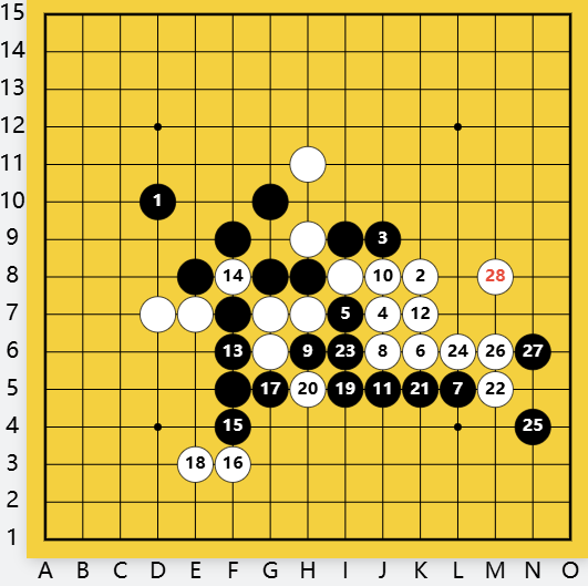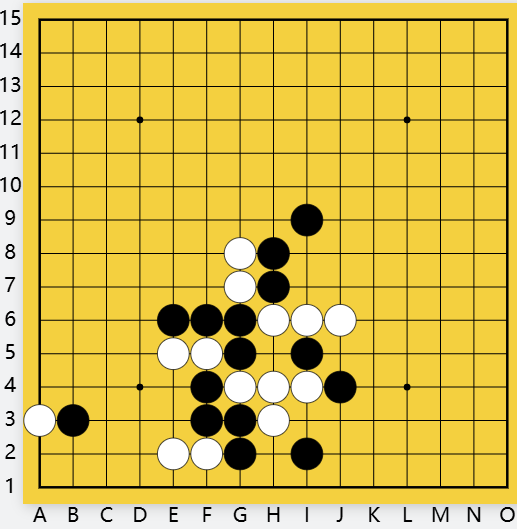 黑棋只有看着白靠着一个眠三成胜势,抵抗只不过耗费时间而已。