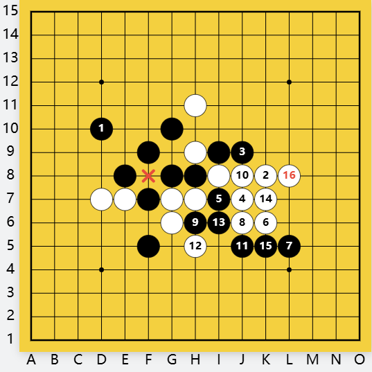 白间挡黑眠三,黑F12双杀。白挡黑活二,黑F11双杀。