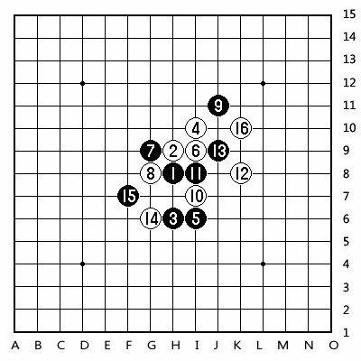 24做杀后,25反做杀唯一,26冲4,28再反做杀,29唯一防!30活三后,31亦只能防上。