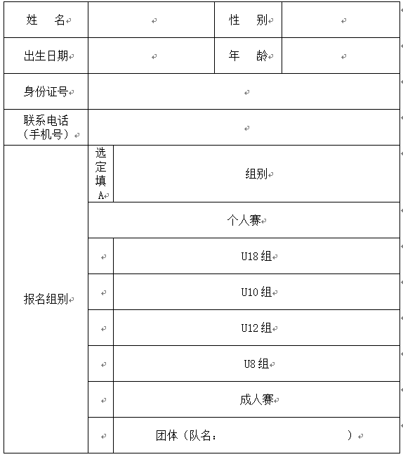 天津市南开区第27届全民健身运动会网络五子棋业余棋王赛报名表