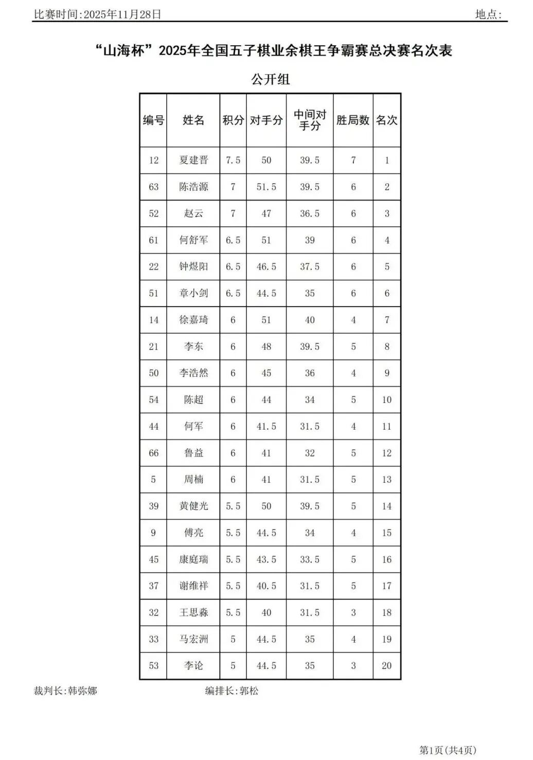 作为压轴组别,公开组的竞争尤为激烈。最终,夏建晋以总分7.5分的成绩摘得桂冠,陈浩源与赵云分获亚军和季军。