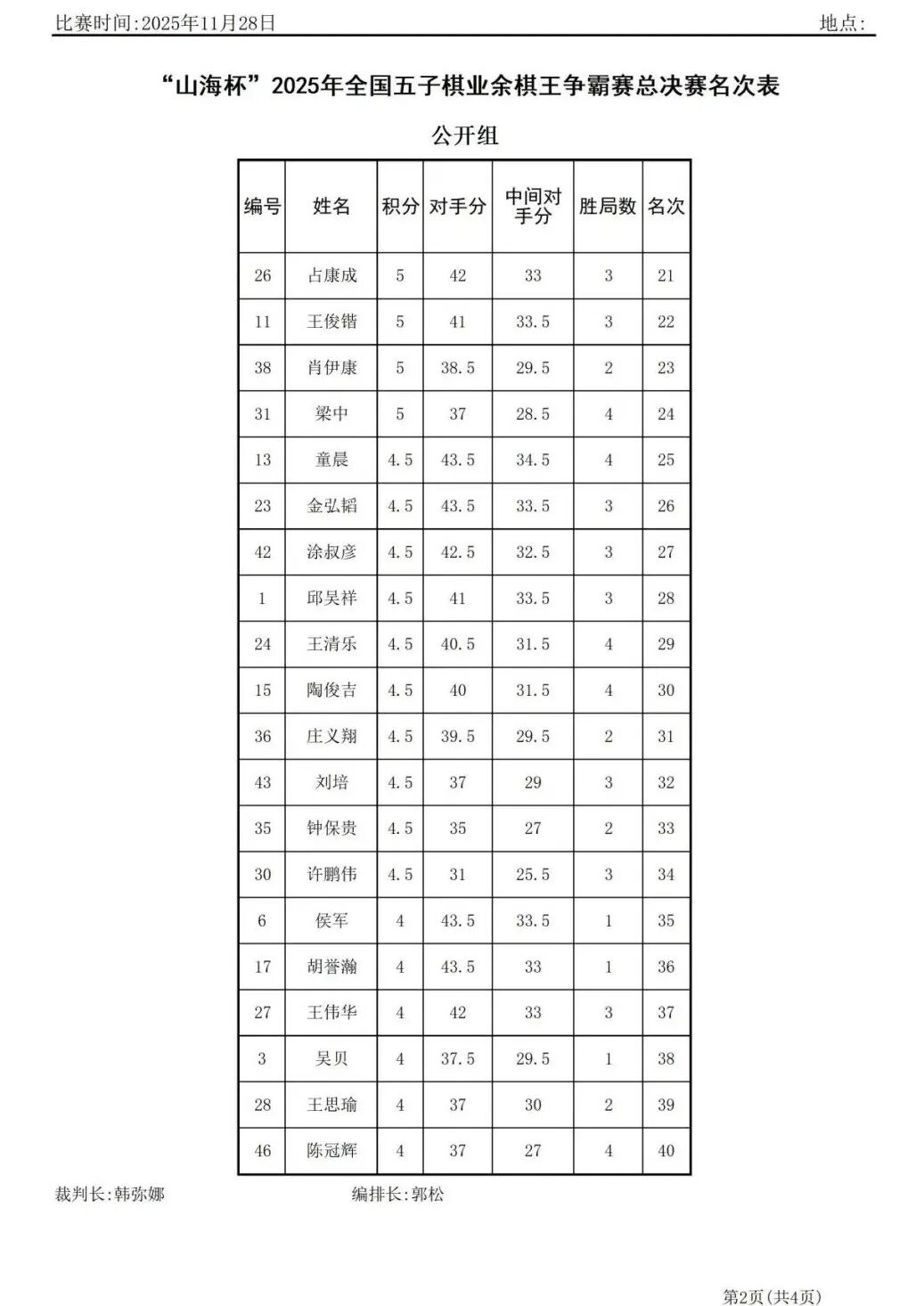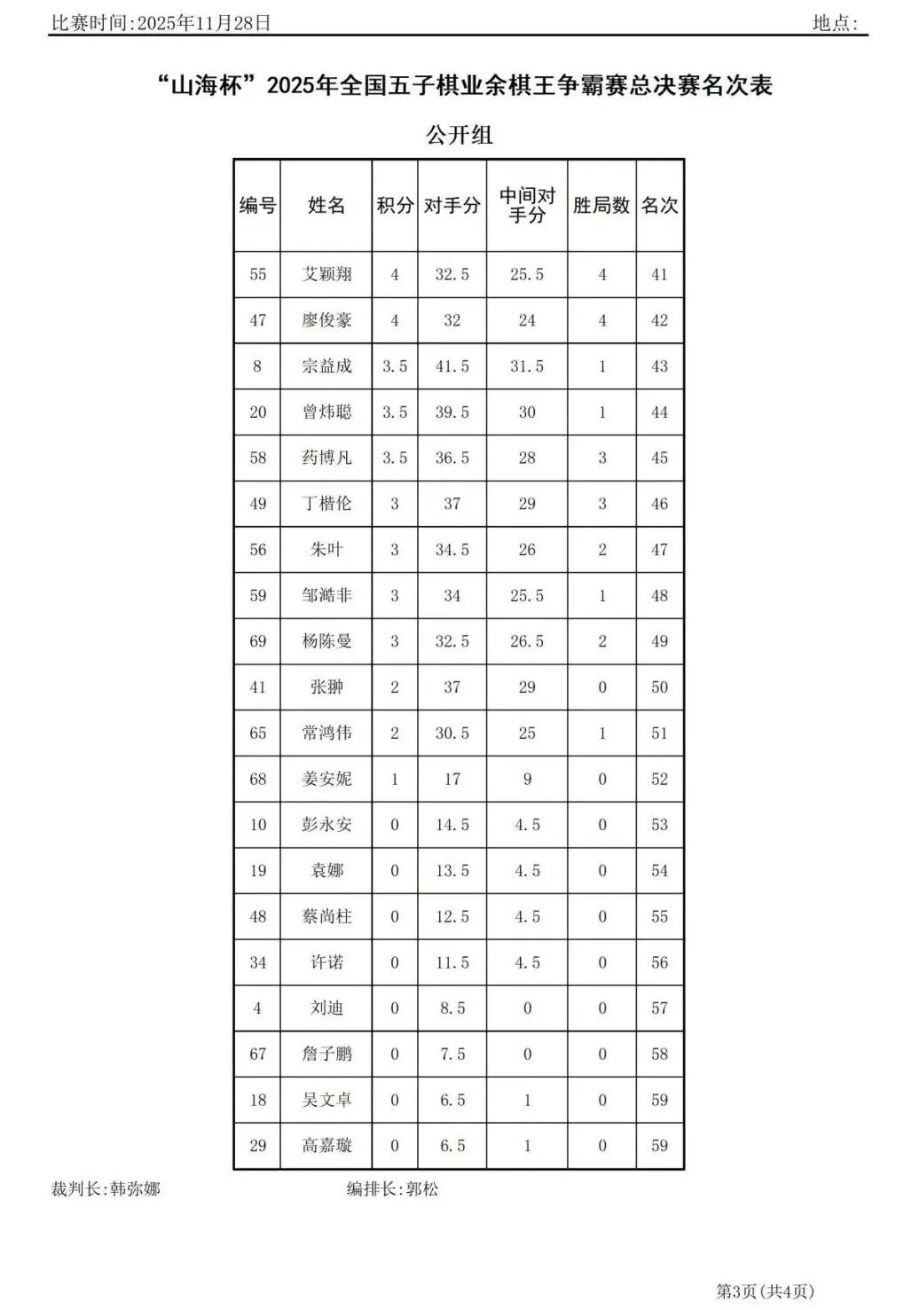 至此,“山海杯”2025年全国五子棋业余棋王争霸赛总决赛全部结束。赛事不仅为各年龄段、各水平的五子棋爱好者搭建了高质量的竞技交流平台,更生动展现了这项智力运动的青春活力、深厚底蕴与广泛魅力。方寸棋盘间,既有新秀崛起的璀璨光芒,也有源于热爱的坚持身影。让我们共同期待明年“山海杯”再度启航,续写更多精彩篇章。