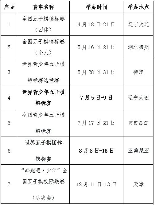 2026年五子棋国内外比赛时间表
