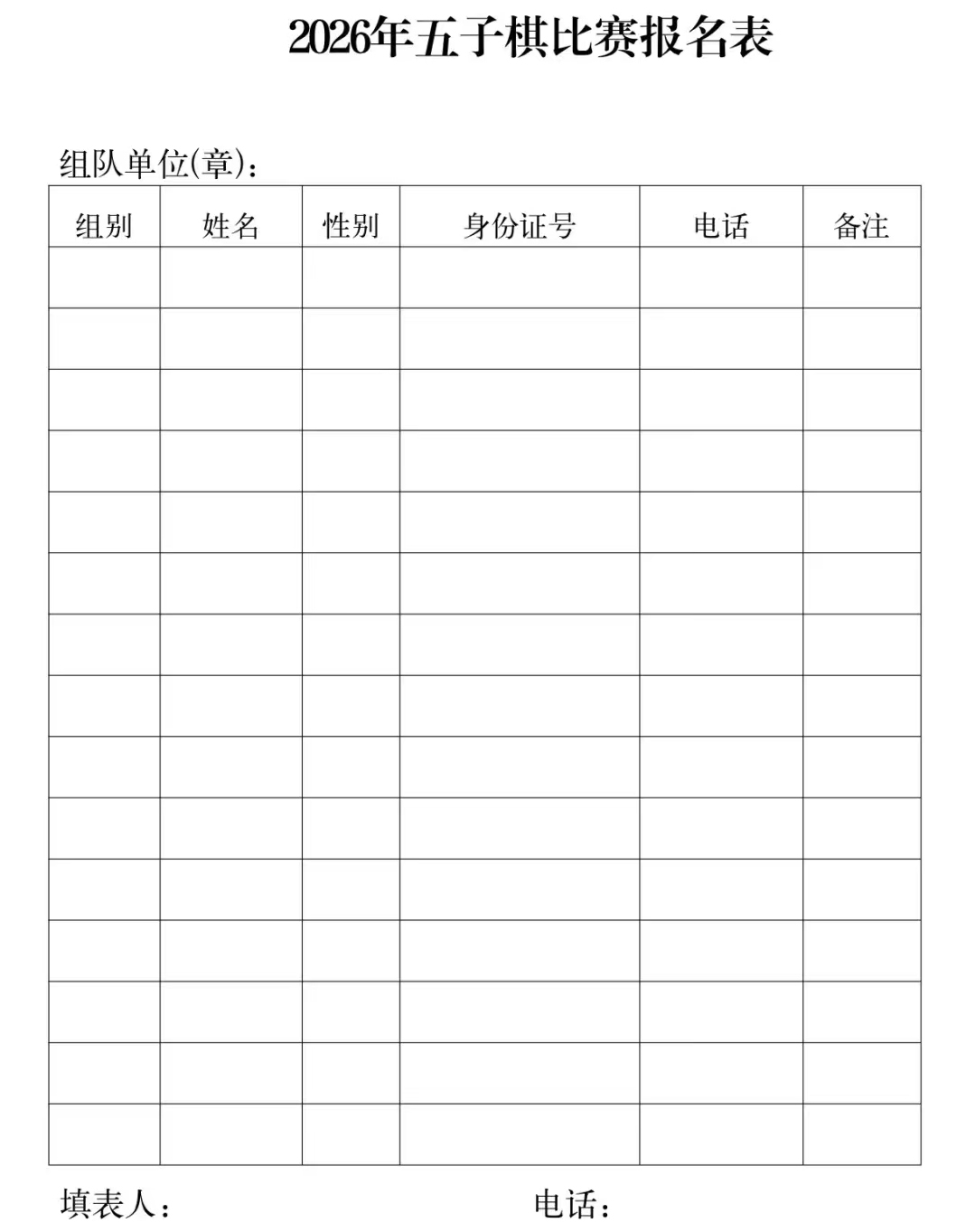 2026年五子棋比赛报名表