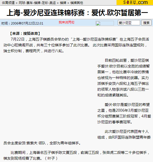 "沪爱连珠锦标赛"开战;爱伏。欧尔暂第一