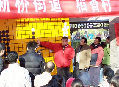 挂盘讲解的一局 时间:2008-11-21 13:53 来源:本站原创 作者: 点击:次 2008年北新桥街道“稻香村杯”五子棋擂台赛,前天下午2:00在海运仓社区花园举行,2米大盘吸引百余居民参与攻擂,北新桥街道主任督战,文教科工作人员辞辛苦组织,那威的助威更是给比赛带来欢声笑语。最后王晨获得冠军,李德亮、焦文明、于宁分获二三四等奖。活动还吸引了北京晚报、北京青年报等记者的关注。 (责任编辑:伍源)