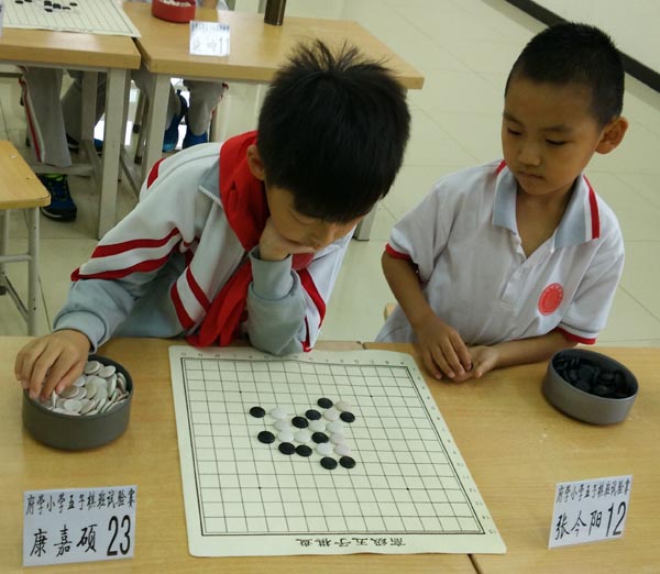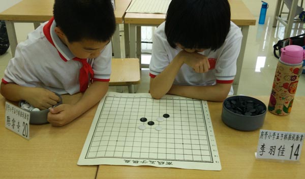 府学胡同小学五子棋班结束这学期课程,通过十四节课的学习,大家对五子棋的发展、基本知识、基本术语、专业规则有了初步了解。薛轲阳、 李亓晨、陈雨菲大胆的走出校门,参加了金融第六届智力运动会五子棋比赛。试验赛最终排名为:高梓杰、薛轲阳、路奕通、刘行知、刘弘毅、郭彦呈、宋之然、张馨元、郭祉元、李亓晨、陈睿奇、康嘉硕、陈雨菲、齐昊霆、王语嫣、裴博雅、骆明希、向高明、王瑞麒、张今阳、徐靖尧、张菡纯、李羽佳、徐茂源、边响、李菁宇。