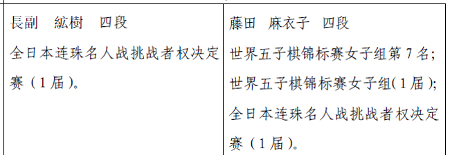 2021年“新春杯”沪日五子棋网络对抗赛日本队阵容