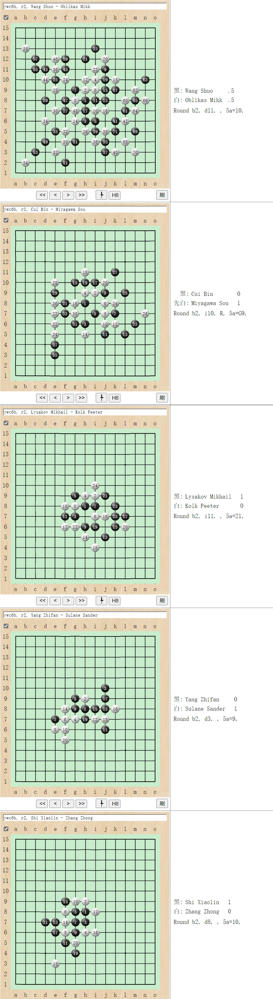 第一轮 Cui Bin (崔斌) VS Yang Zhifan (杨知凡) 疏星 5A=G9 1:0 Shi Xiaolin (师晓林) VS Wang Shuo (王硕) 岚月 5A=H9 0:1 IMG onmousewh