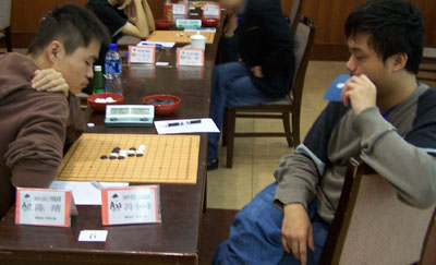 第一轮:对阵西北狼棋社陈亮。对手开瑞星我思考后不交换。执白顶住了对手60多手的进攻(其间给对手留下了一个理论杀,不过由于此杀不在我们当时的争夺焦点区域,因此两人都没注意到……)。之后,局面趋向绝对平稳,可时间对比上却是我剩32分钟他剩3分钟。而就在我想拍死对手的过程中,漏掉了对手的挣扎VCF……挂了。