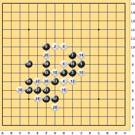 开局便是必胜变化,但我怀疑9、10都有些问题,11后白棋如何防守?