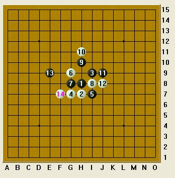 图—02,16手之后,白棋右下非常空旷,为下一步做棋奠定了良好的空间。 ![]() 图02 实战中,黑15所以选择了防守。 G6是白棋的关键点,如果G6被白棋所占,后果不堪设想 于是,黑15选择了一手很矜持的防守,控制白下边的外势,不难看出这手黑大局观很好。白为先,这样给白造成可趁之机,白下出一手很飘逸的16 黑17封三争二,白18跟防之后与10手形成大跳二, 19似乎有些急于求成,做二之后会在左下占有很大一个空间,白20继续活三与黑展开对攻,不知道大家注意到没,20与8又形成新的活2.黑21 断三唯一防守,白22于是趁机活三、把白的攻击方向引到右下,23唯一防,此时,棋局黑白各占有优势,黑如果杀不出,顾虑的应该就是这个16了。此时,白24大胆的选择了L5带活了右边的所有棋子。, 白24手之后,黑25没有选择防守,而是用进攻进行交换从而形成对攻,黑29向右活三.白30左边跟防,此时,黑31 做四三杀,白32封三做二,黑33继续活三,34跟防守之后,黑棋大大缩减了自己的空间,黑35继续做杀,遗憾的是白棋超时······ ![]() 这盘棋的亮点在16手,不知道大家对这个16怎么看?欢迎跟帖交流探讨。 |