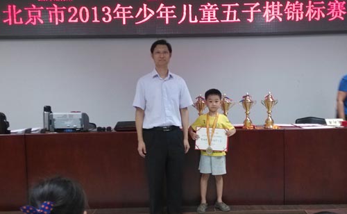 上周六北京市2013年少年儿童五子棋锦标赛经过七轮争夺各组成绩揭晓:少年组伍思达、王轩、韩智朗分获冠亚季军,曹雪钰获得女子第一名。儿童甲组郑新锐、吴紫菱、王想分获冠亚季军,李润圃、 张剑韬、曹梦涵名列四五六名,吴紫菱、韦心怡、林奕囡排在女子前三名。儿童乙组邵泽佺、赵卓晨、杨昊楠分获冠亚季军,刘奕锋、孙佳仪、 许嘉伦、 张清圆、肖聿琳名列四五六七八名,孙佳仪、张清圆、肖聿琳排在女子前三名。儿童丙组马晨致、贺禹成、 张云锦分获冠亚季军,曹润霖、王卓、郭煜瑶名列四五六名,张云锦、郭煜瑶、喻九宁排在女子前三名。徐浩森获得希望之星奖。